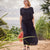 Our Boho maxi dress is back by popular demand. It is the perfect flowy maxi dress for Spring and is available in Black 100% Rayon. The Boho has elastic at the neckline for an off the shoulder fit while the elastic shrirring waistband allows you to create your desired silhouette, as you can adjust the band to sit wherever you feel most comfortable. To finish the style off, the sleeve has a cold shoulder slit to add to the Boho feel of the dress.