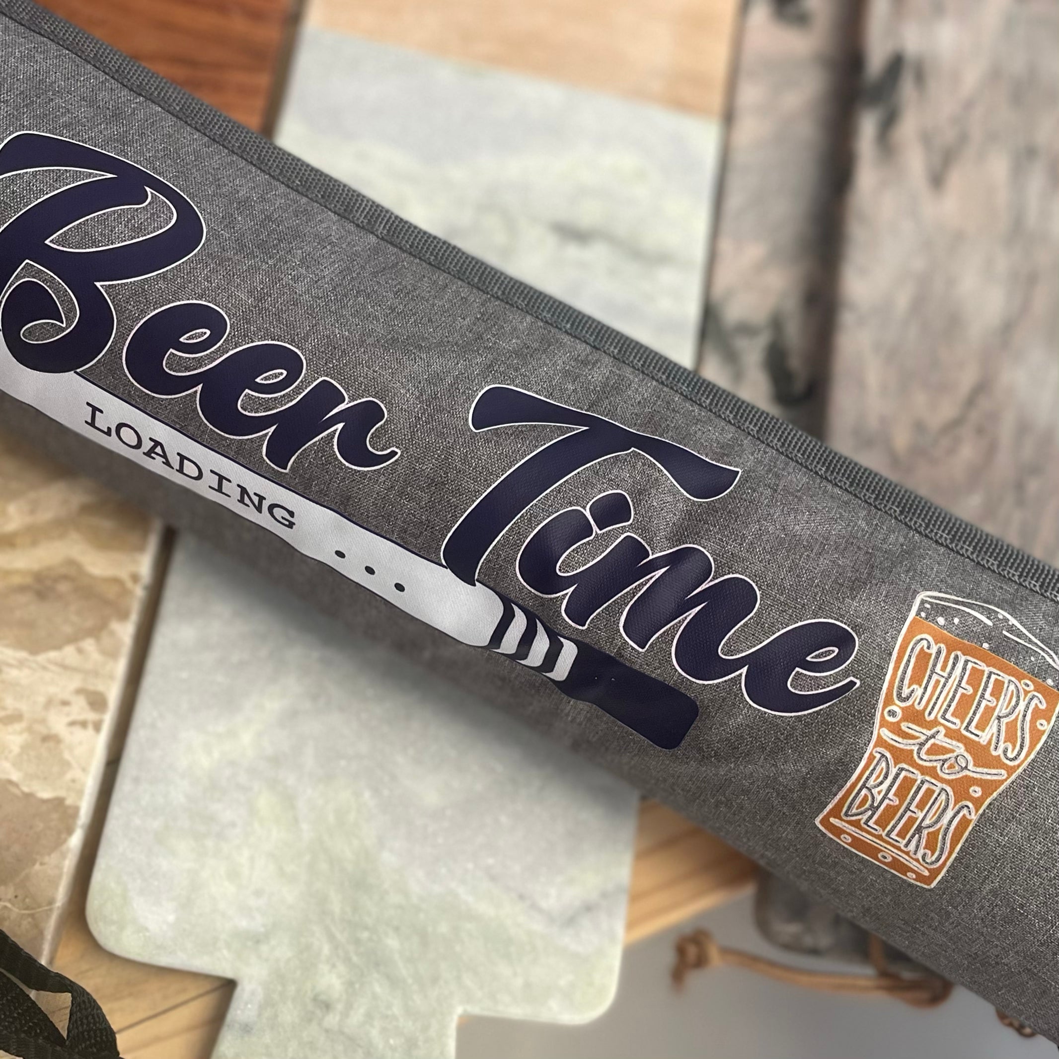 With the bold quote “Beer Time Loading” and a fun graphic of a frosty beer glass stamped with “Cheers to Beers”, it doesn’t take itself too seriously—because good times rarely do. Slim, practical, and effortlessly cool, it keeps your drink cold without weighing you down.