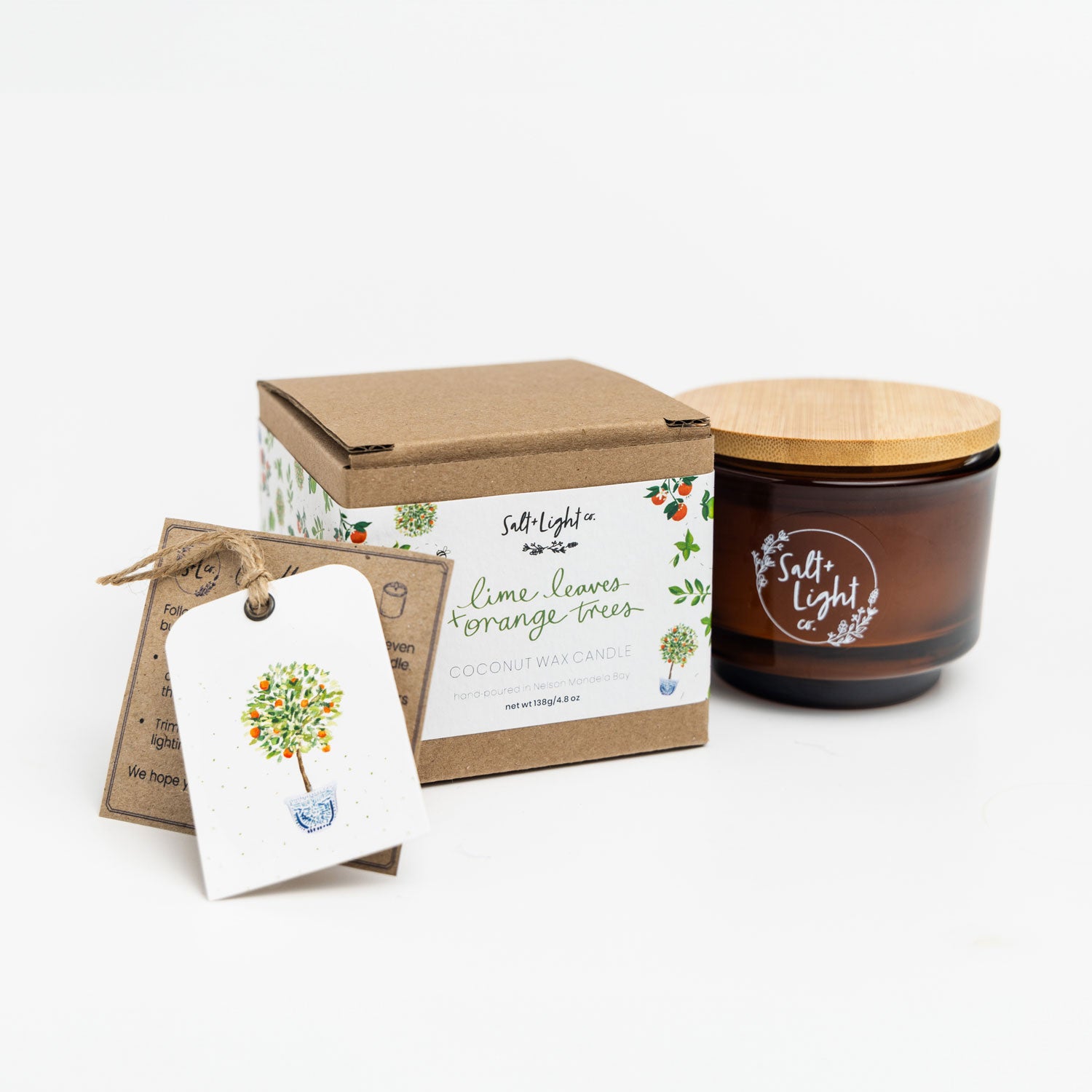Bright, zesty and full of sunshine, the Salt & Light: Lime Leaves & Orange Trees candle captures the freshness of a citrus grove in full bloom. Hand-poured in creamy coconut wax, this uplifting fragrance blends crisp lime leaves with the sweet, juicy notes of sun-ripened oranges — a scent that feels like stepping into a warm summer morning.