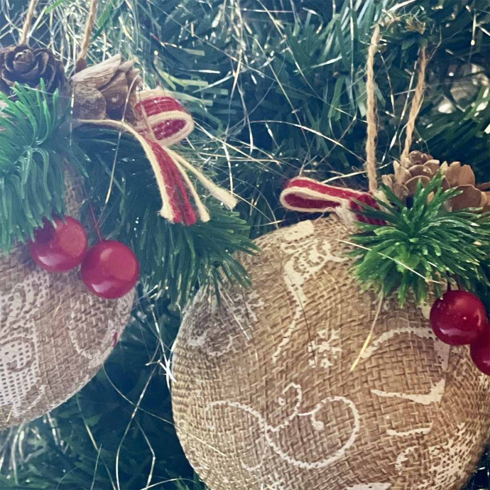 Christmas Baubles | Decorated Hessian