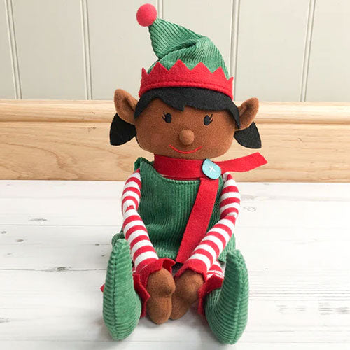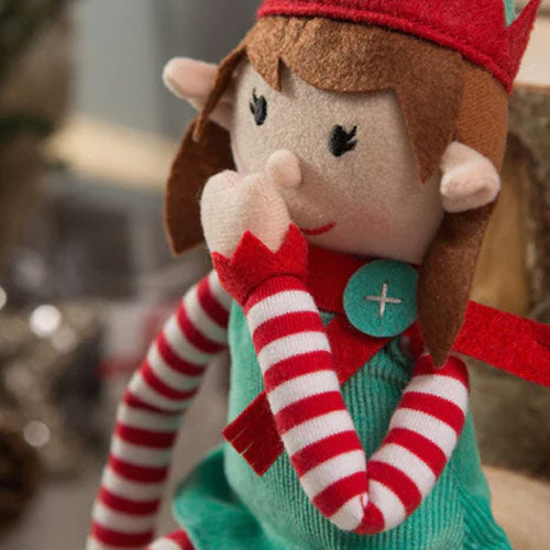 A friendly face, a festive dress, lovely long eye lashes, long legs & mischievously long arms - our little Girl Christmas Elf is perfectly designed. Elf finds it easy get up to mischief (her arms are long enough to reach around things & her hands velcro together!) With a cute little face & a dinky scarf, we know Elf will be loved.