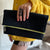 We are in love with the elegance and versatility of this evening bag in luxurious black velvet fabric with a luminous yellow chartreuse zip which we adds an eye-catching pop of colour and zest!