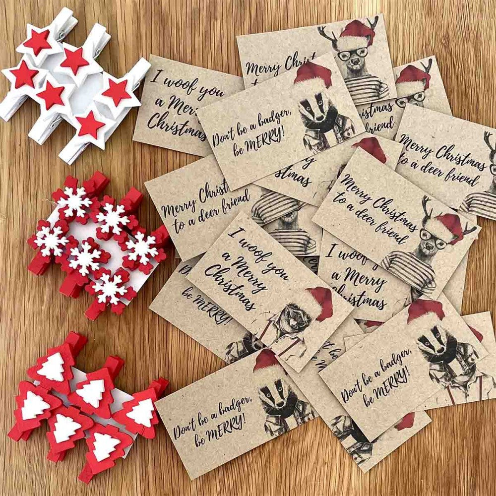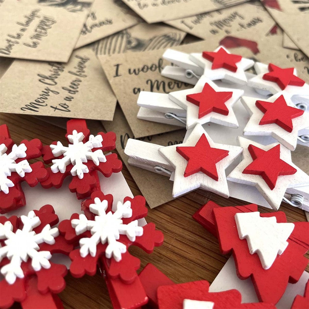 Add a touch of festive charm to your holiday décor with these delightful Christmas-themed gift pegs. Perfect for attaching cards or tags to gifts, holding name places at your Christmas table, or stringing up holiday cards across the mantle.