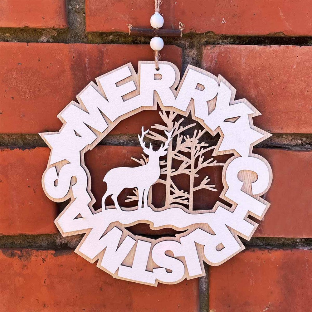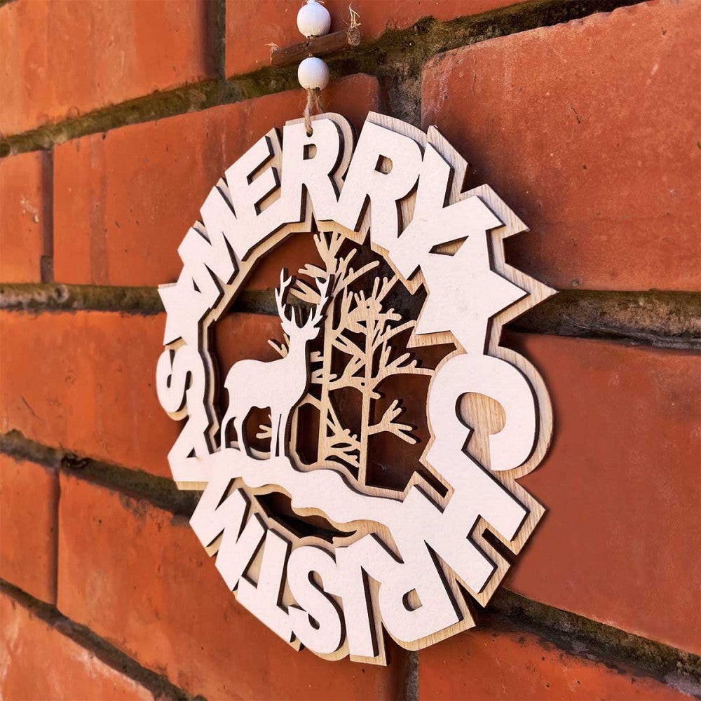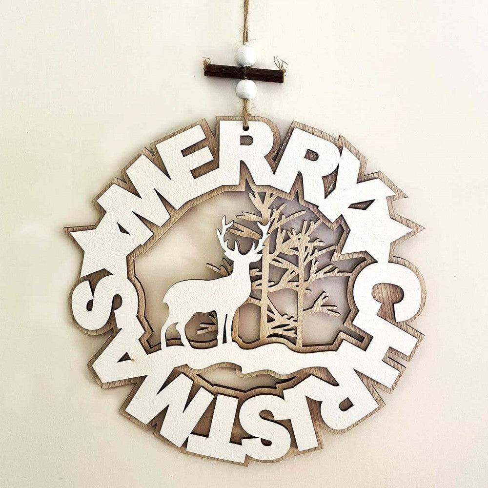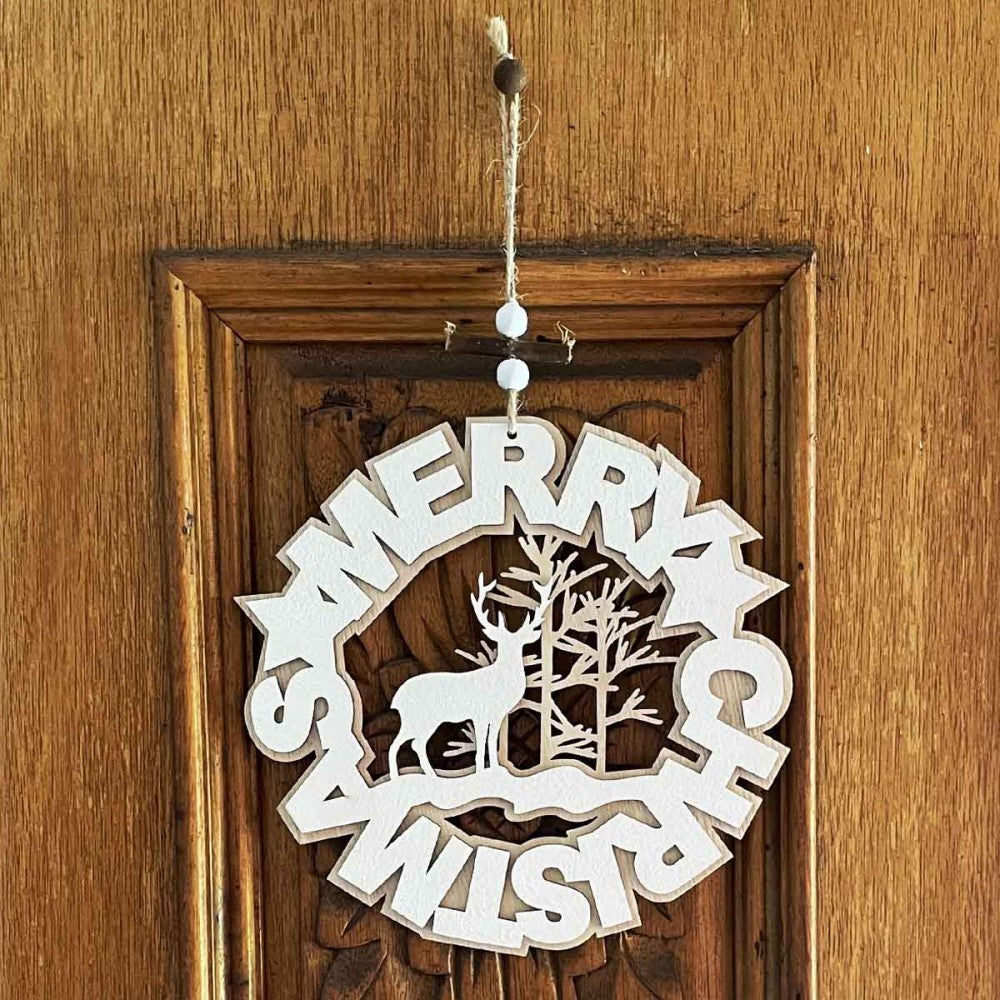 We love this small Merry Christmas sign with winter wonderland decoration. Can be used on your front door in place of a floral wreath or somewhere near the mantlepiece. Lovely for Christmas!