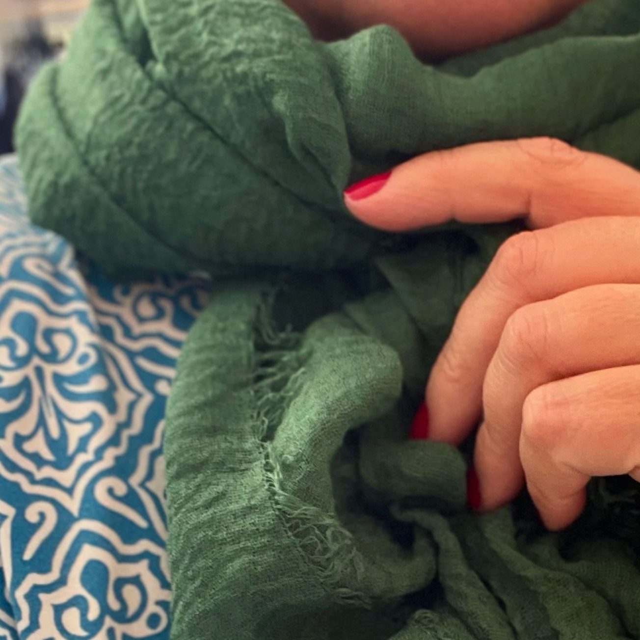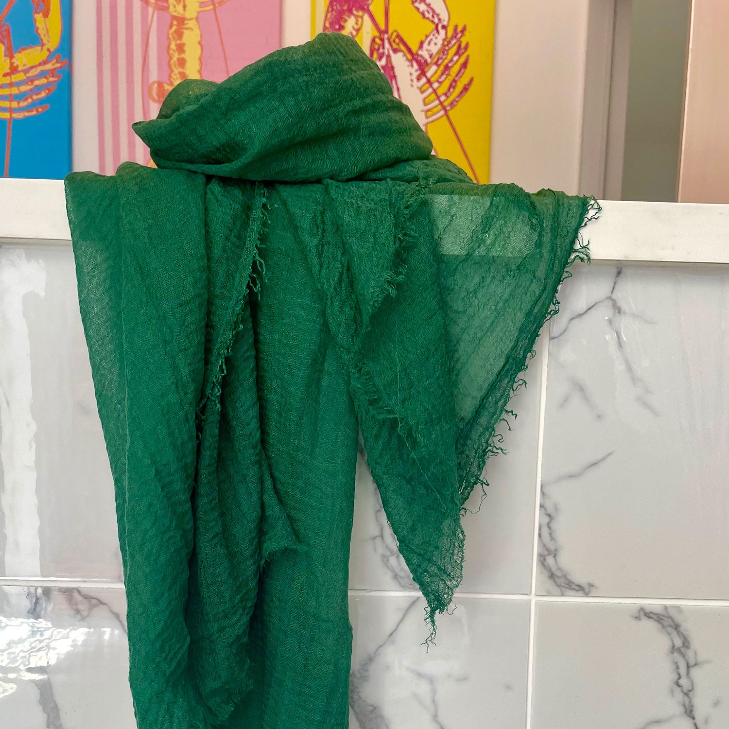 Embrace effortless summer style with this deep green sarong/scarf, made from a thin, flowy fabric that drapes softly and beautifully. Light as a breeze and wonderfully versatile, it’s ideal as a chic beach throw, an easy wrap, or a summery scarf to elevate any outfit.