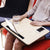This wooden handy lap desk is soft and padded on the bottom, it has a slot to fit your iPad into and also a flat bed/desk space that's large enough for a laptop.