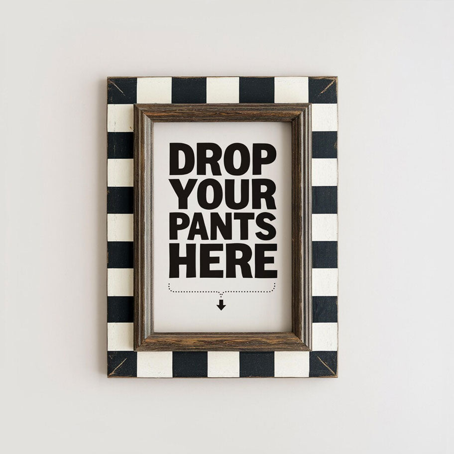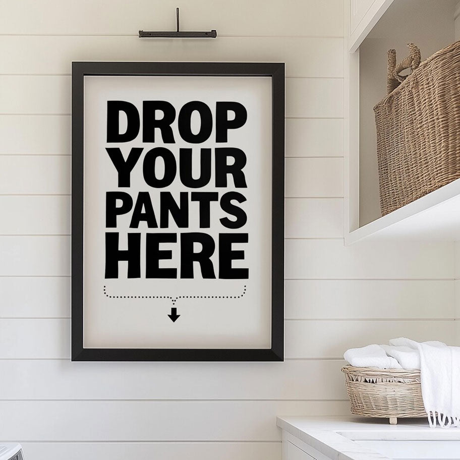 Make laundry day a little less boring with this bold Drop Your Pants Here print.