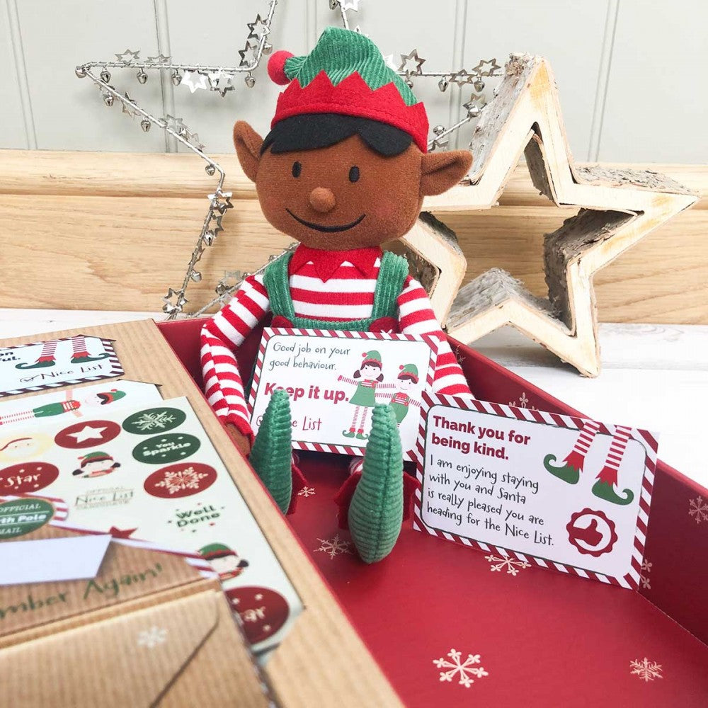 Where the magic really happens is in the enclosed Magical Reward Kit - a unique & magical package to promote good behaviour. Designed for families with up to two siblings, all of the items in our kit can be shared & we have included letters to/from Santa, Nice List Certificates, mini elf report cards, a reward chart and stickers, “Elf is Here” posters, a departure letter from Elf and a “thank you for having me” postcard to send after Elf has returned to the North Pole.
