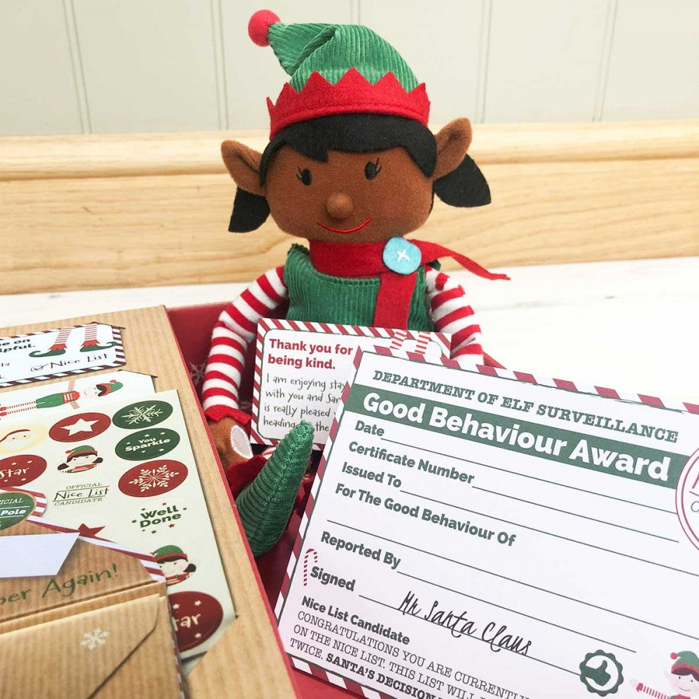 She has such a cute little face & a dinky dungaree dress, we know she will be loved. Simply perch your Elf on a shelf each night, or let her get up to some fun in your home, the level of creativity and craziness is up to you!Where the magic really happens is in the enclosed Magical Reward Kit - a unique & magical package to promote good behaviour.